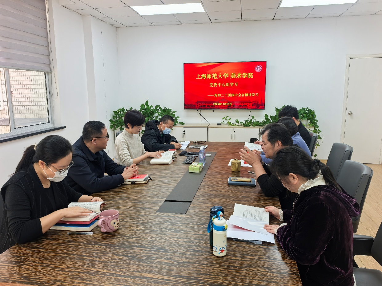 2025年11月10日下午,美术学院党委在学院210会议室召开党的二十届四中全会精神专题学习会。会议由学院党委书记时臻主持,学院党委委员及党政班子成员参加。