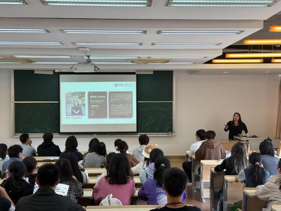 在互动环节,同学们积极提问,涵盖了留学费用、语言考试准备、实习经历对申请的影响等多个方面。唐尹洁校友耐心解答,她的回答既专业又充满温情,让同学们对艺术留学有了更全面的认识。