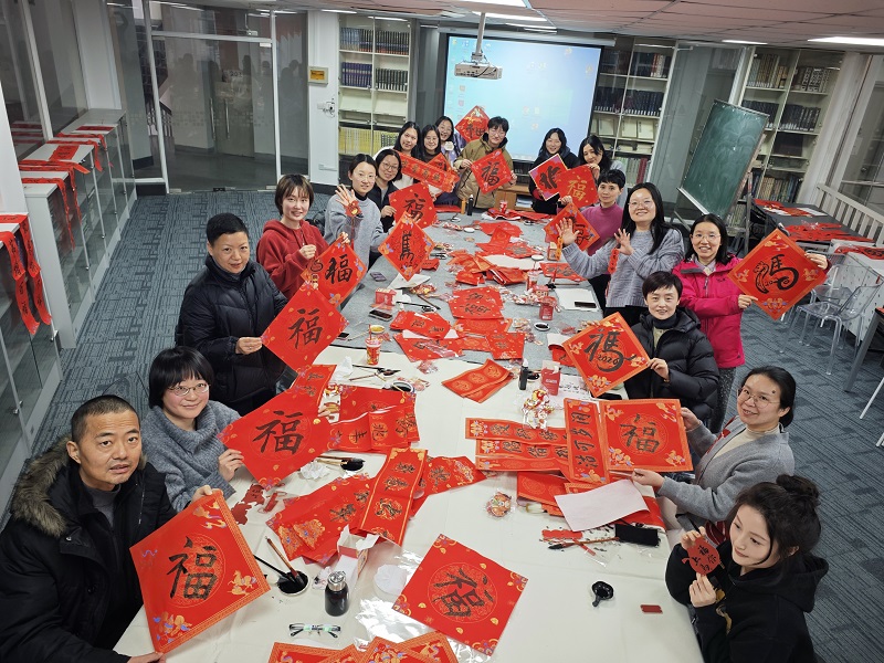 此次活动以笔墨为媒介,以撰写春联福字为载体,不仅让老师们感受到了中华传统文化的独特魅力,也体验了手写春联的仪式感,更加强了教职工之间的交流互动,增强了美院的凝聚力和向心力。活动在温馨喜庆的氛围中圆满结束,老师们带着满载祝福的春联和“福”字离去,也预示着学院将以饱满的热情和崭新的面貌,迎接2026年新春的到来。